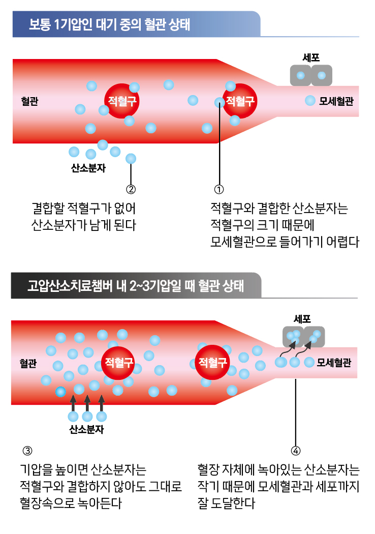 기압을 높이면 산소가 효율적으로 체내에 흡수되는 원리